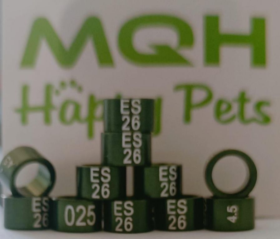 Anillas de 4,0 mm. especiales para:– Psitacidos: Pericos Ingleses (según tamaño), Agapornis, Karakiris, Rabadilla Roja e Inseparables.