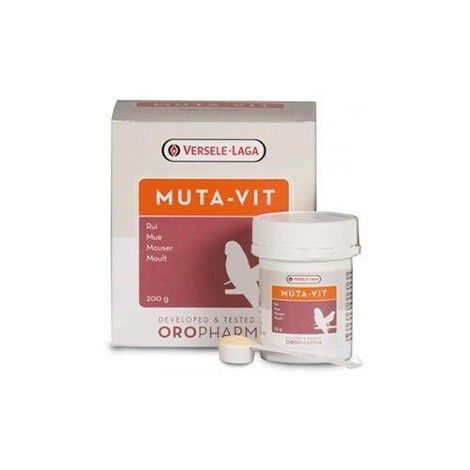 Oropharma Muta-Vit es una mezcla especial de vitaminas, aminoácidos y oligoelementos, con alto contenido de aminoácidos sulfurosos y biotina. Este suplemento dietético promueve y mejora las plumas, protege el hígado y asegura un metabolismo óptimo. Muta-Vit ayuda a prevenir la muda del espanto. Durante la muda, el ave está sujeta a estrés. Un suplemento óptimo para la alimentación es necesario entonces. Los aminoácidos sulfurosos de Muta-Vit son esenciales para la producción de queratina, los materiales de construcción para plumas y piel. La biotina asegura una buena calidad de queratina. Esto garantiza un molde rápido y bueno.Ideal para el molde: promueve el desarrollo del plumaje y el estado de las plumas.Fortalece el plumaje.Ayuda a prevenir la mudaModo de empleo1 nivel de la medida (= 1 g) de Muta-Vit por 250 ml de agua potable o por 100 g de alimentos Orlux suave o eggfood.Durante la muda para promover el desarrollo de las plumas: tres veces a la semana.Durante la preparación para la temporada de presentación: durante 4 días consecutivos.Después del tratamiento con antibióticos u otros medicamentos: durante 5 días consecutivos.En los casos de disminución del apetito, como resultado de un metabolismo deficiente:. Durante toda una semana Véase también la tabla Oropharma instrucciones para las combinaciones óptimas de los productos Oropharma, adaptadas a cada estación.ComposiciónGlucosa, MaltodextrinaAditivos / kgAditivos nutricionalesvitamina A 2850000 UI, vitamina D3 200000 UI, vitamina E 20000 mg, vitamina K3 635 mg, vitamina B1 830 mg, vitamina B2 3350 mg, D-pantotenato de calcio 2300 mg, vitamina B6 1250 mg, vitamina B12 5 mg, vitamina C 12550 mg, niacina 16750 mg, ácido fólico 310 mg, biotina 225 mg, 3.2.3. L-lisina 19000 mg, 3c301 DL-metionina 28500 mg, E1 (hierro) 2350 mg, E4 (cobre) 475 mg, E5 (manganeso) 4700 mg, 3b605 (zinc) 4250 mg, 3b2O2 (yodo) 95 mg, 3b8. 11 (selenio) 19 mgAditivos tecnológicosAntioxidante