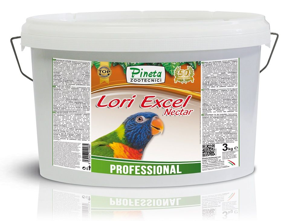 Para loros y loritos incluyendo Charmosyna con polen y productos de la colmena.Fue estudiado y formulado con selecta ingredientes: contiene el polen, productos de la colmena, animal y las proteínas de origen vegetal de alto valor biológico, vitaminas, minerales, glucosa y fructosa. Tiene una baja vitamina A contenido y hierro. Es un alimento altamente concentrado, que puede ser alimentado como tal o diluirlos en agua en la proporción de 1 parte de LORI EXCEL NECTAR y 5-8 partes de agua potable.Se recomeinda durante todo el añoUso: como es o mezclado con agua en una dosis de 1 parte de Lori Excel con 5-8 partes de agua.Dosis: la libre disposición.Ingredientes: Productos de granos de cereales, otras semillas o frutas, productos de otras plantas o de semillas o de frutos oleaginosos, productos apícolas (miel y polen), productos de la industria transformación de la remolacha azucarera, los productos lácteos, minerales.Proteina 25,00%Grasas 3,00%