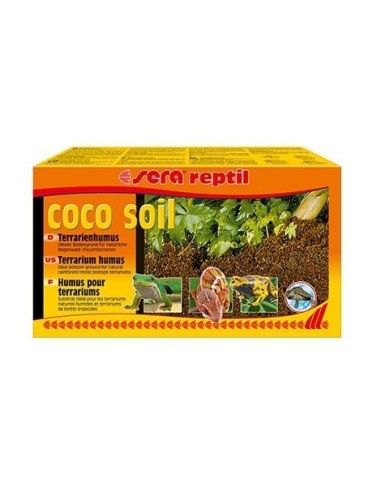 Sera reptil coco soil Humus de fibras de coco para terrarios húmedos Esá realizado a partir de cultivos de coco, de origen natural, no contienen ni fertilizantes ni aditivos. Ha sido sometido a un tratamiento a altas temperaturas, sin gérmenes ni hongos Reserva de humedad ideal Proporciona 8 litros de sustrato