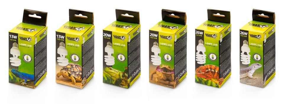 Las la´mparas UVB permiten a los reptiles producir vitamina D3 fundamental para la absorcio´n de calcio.Esta la´mpara se adapta a las especies dese´rticas.La radiacio´n UVB es filtrada por el vidrio, por lo que es importante colocar la bombilla correctamente.La potencia watt ayudara´ a elegir el alcance de la bombilla.Incluso si las la´mparas calientan poco, se recomienda colocarlas en el portala´mparas E27 de cera´mica.En caso de un uso regular de 10 a 12 horas al di´a, se recomienda cambiar la bombilla cada 6 meses.